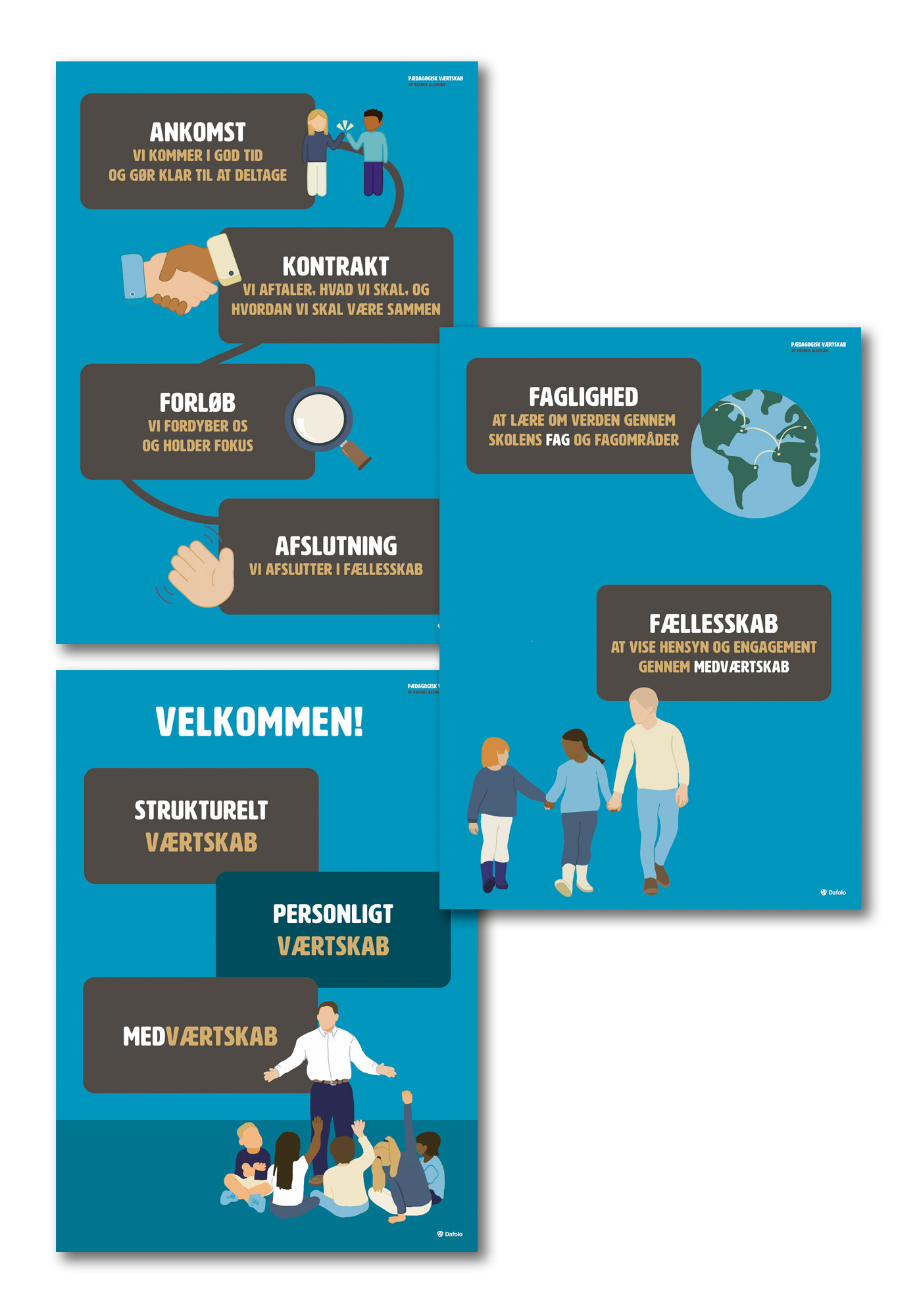 I denne serie som indeholder tre plakater visualiseres Rasmus Alenkær vigtigste begreber om pædagogisk værtskab.